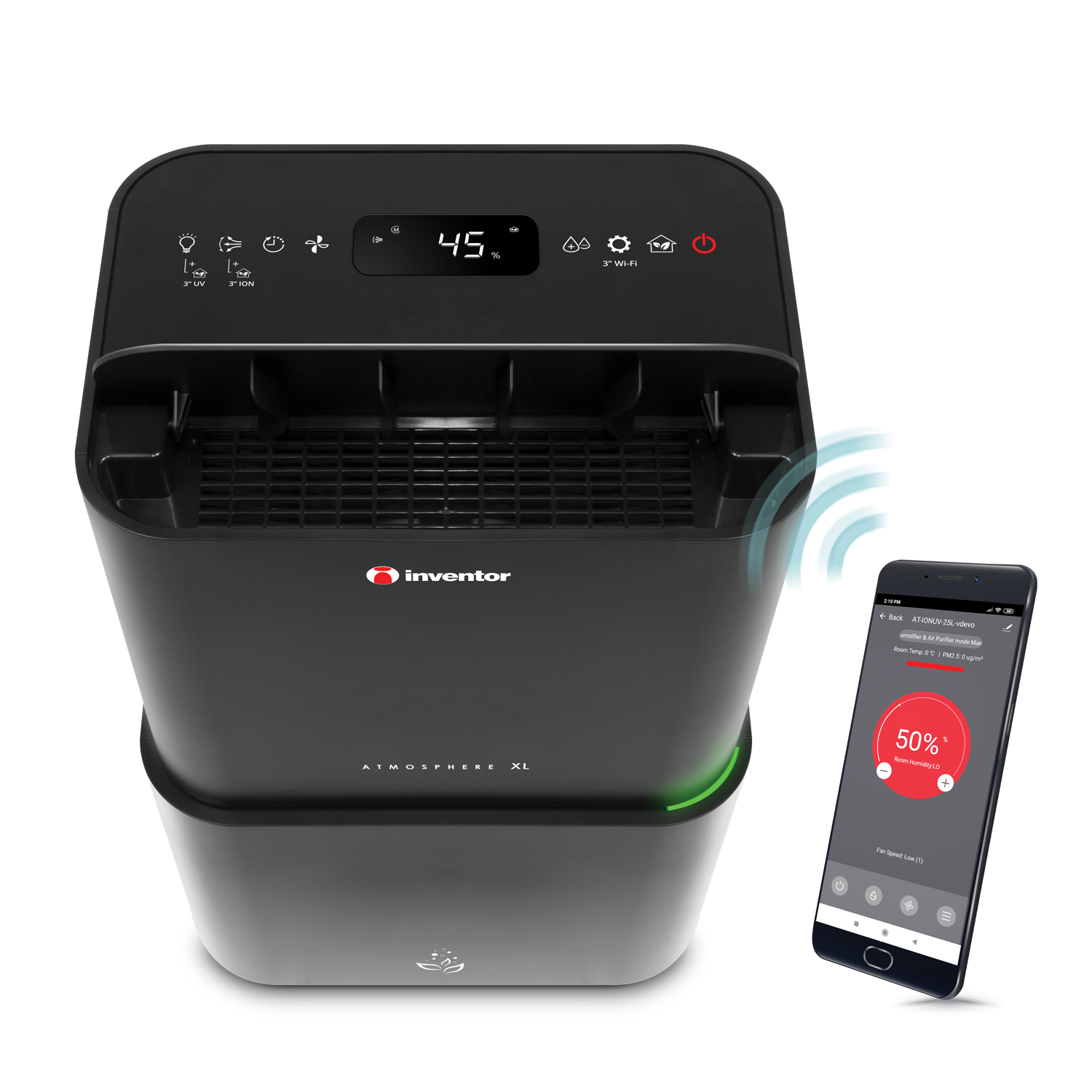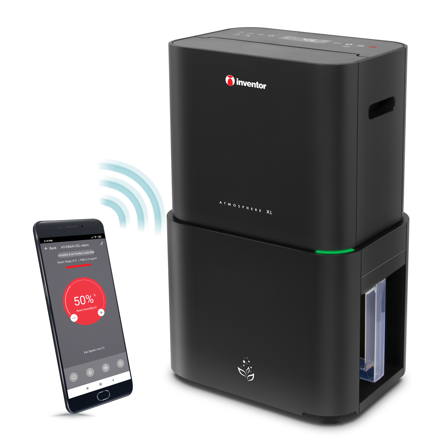 2 laitetta yhdessä! Inventor Atmosphere XL -ilmankuivain ja autonominen ilmanpuhdistin samassa laitteessa. Kosteudenpoistoteho 25 l/24 h.